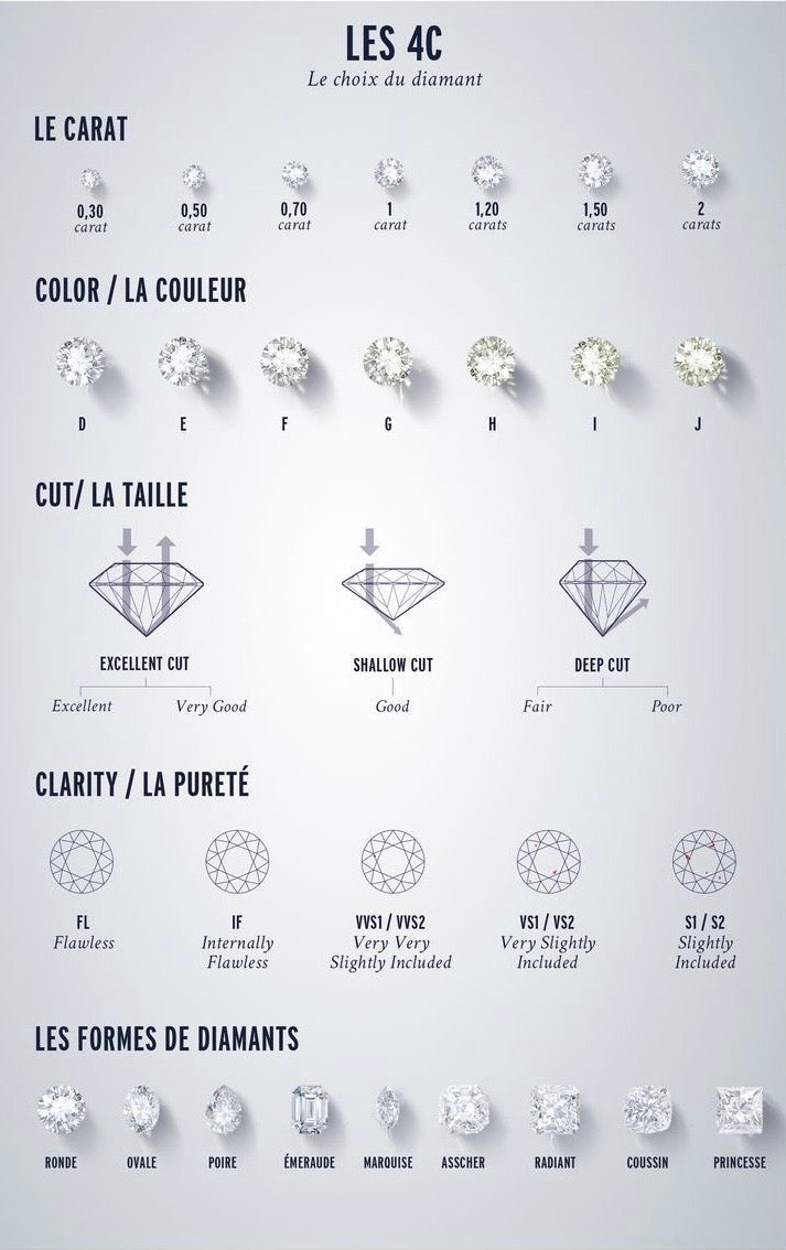 • 補充說明:切工被認為是4C中最重要的一項,因為即使其他三項完美,若切工差,鑽石也會顯得暗淡無光。不同形狀(如公主方形、心形、橢圓形)的切工標準略有不同,但圓形鑽石因其光學效果最佳而最受歡迎