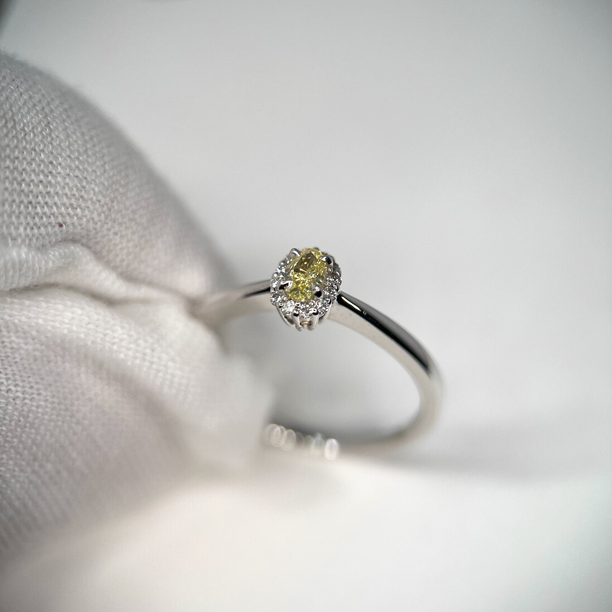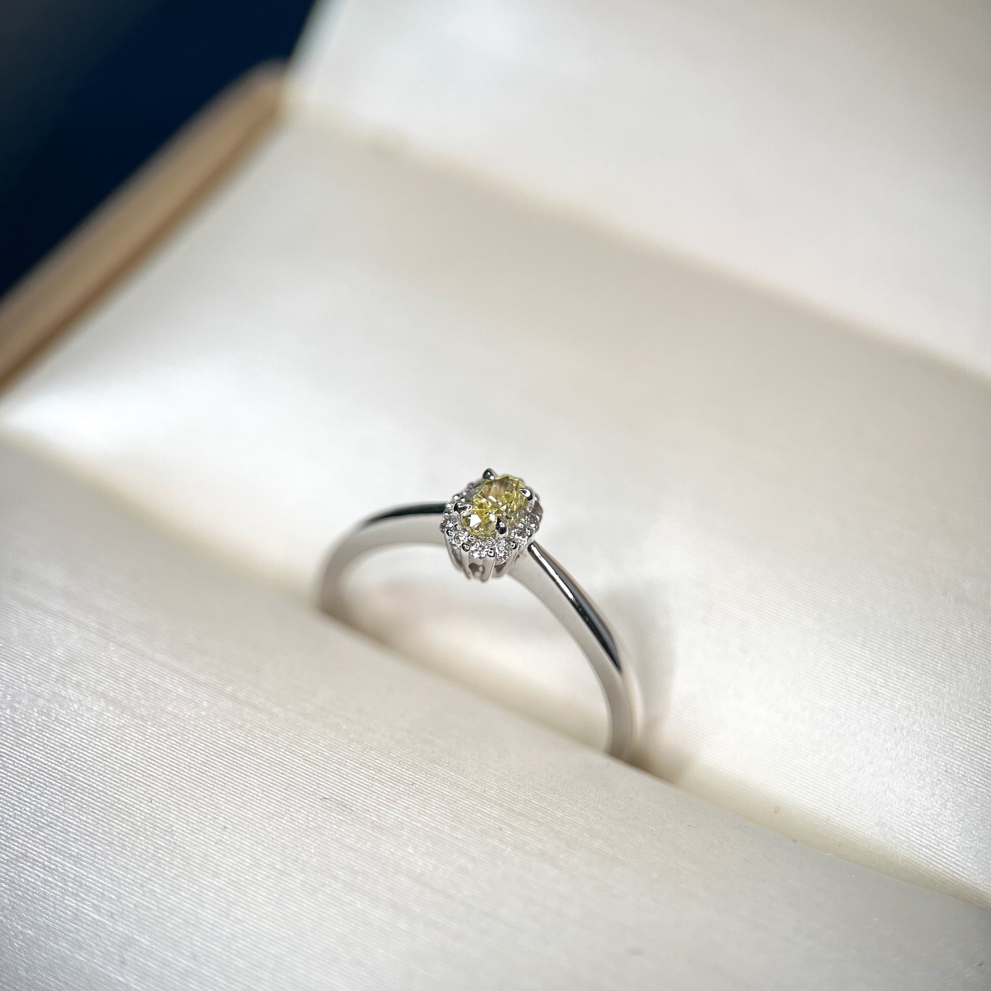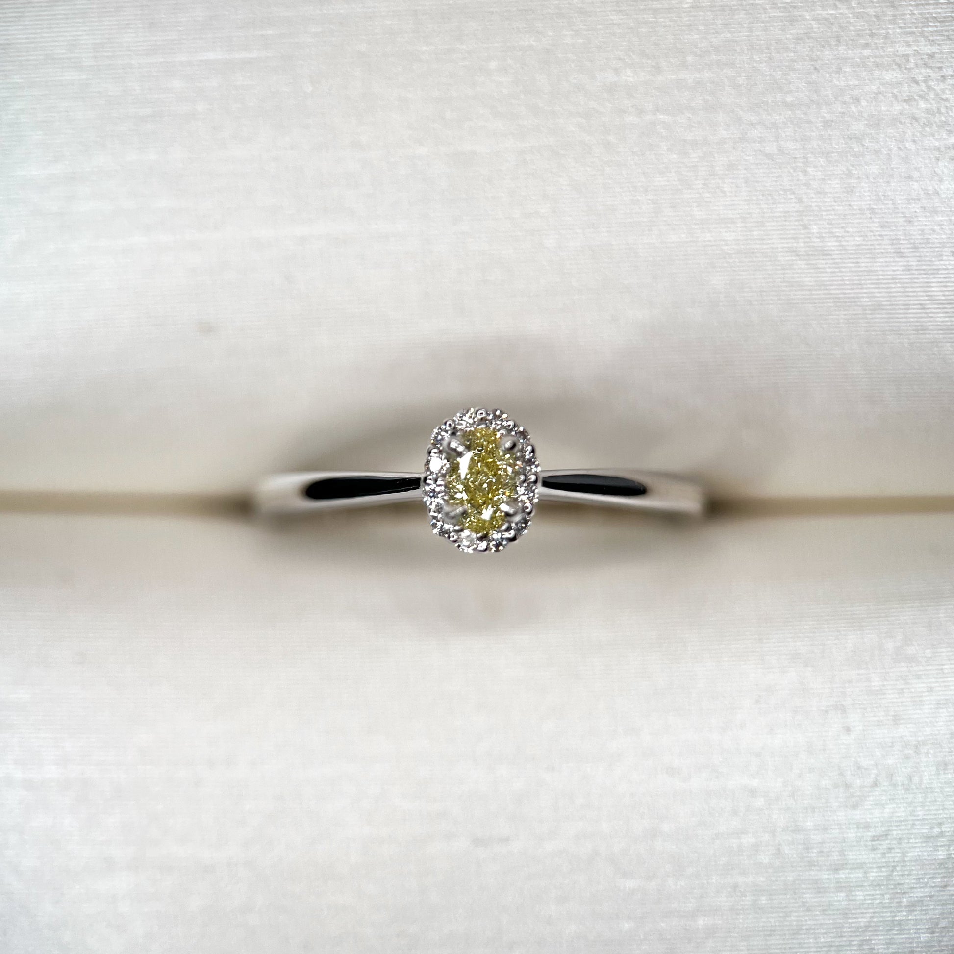 主石|天然橢圓黃鑽 1顆,14分配鑽|天然小圓鑽 12顆,共5.4分材質|白K金750,約重0.47錢※因寶石稀有性,每件作品實際克拉數略有不同