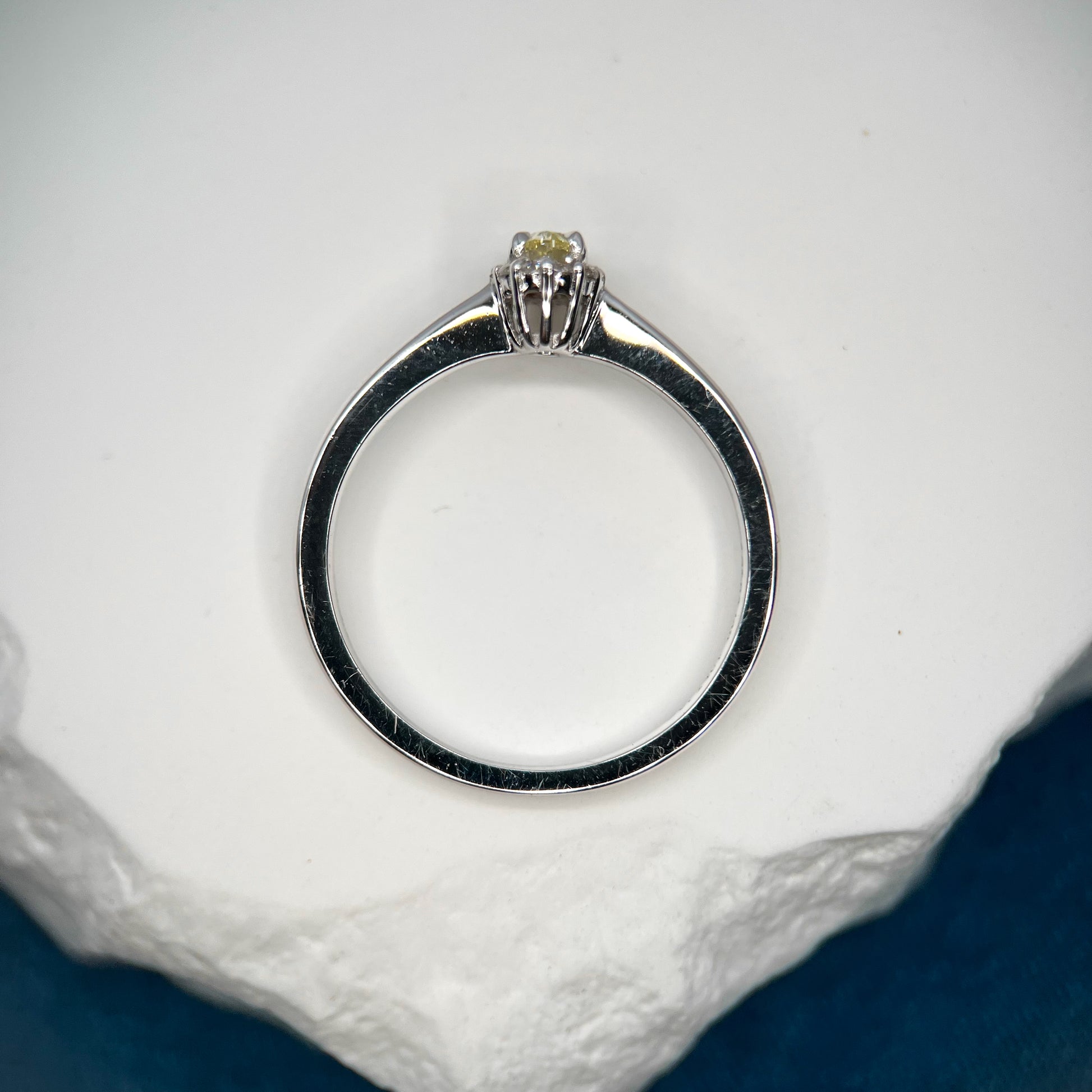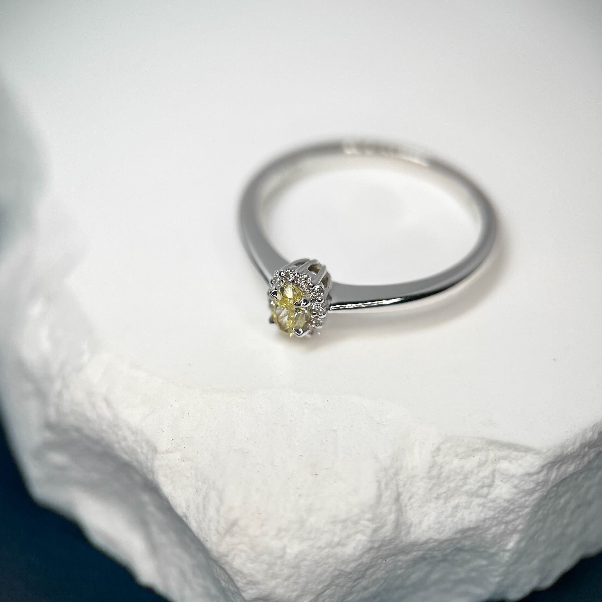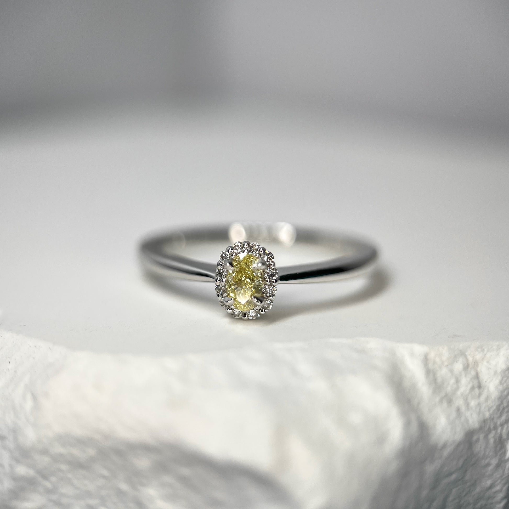 主石|天然橢圓黃鑽 1顆,14分配鑽|天然小圓鑽 12顆,共5.4分材質|白K金750,約重0.47錢※因寶石稀有性,每件作品實際克拉數略有不同