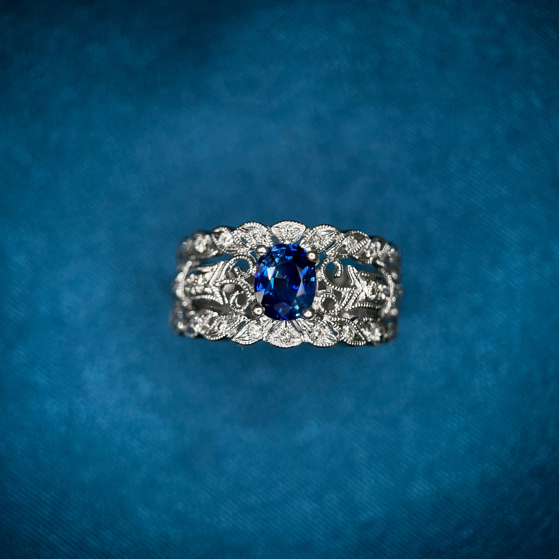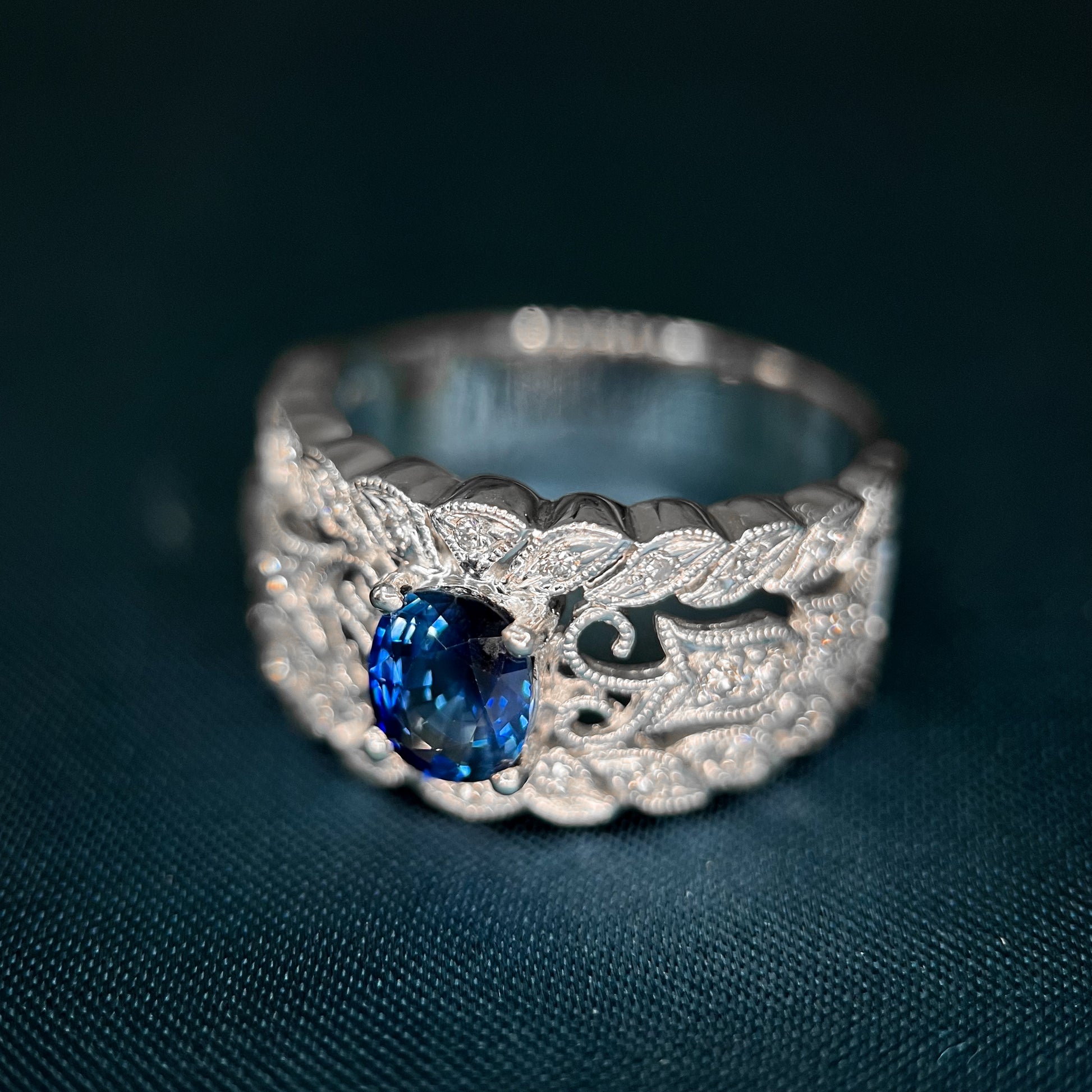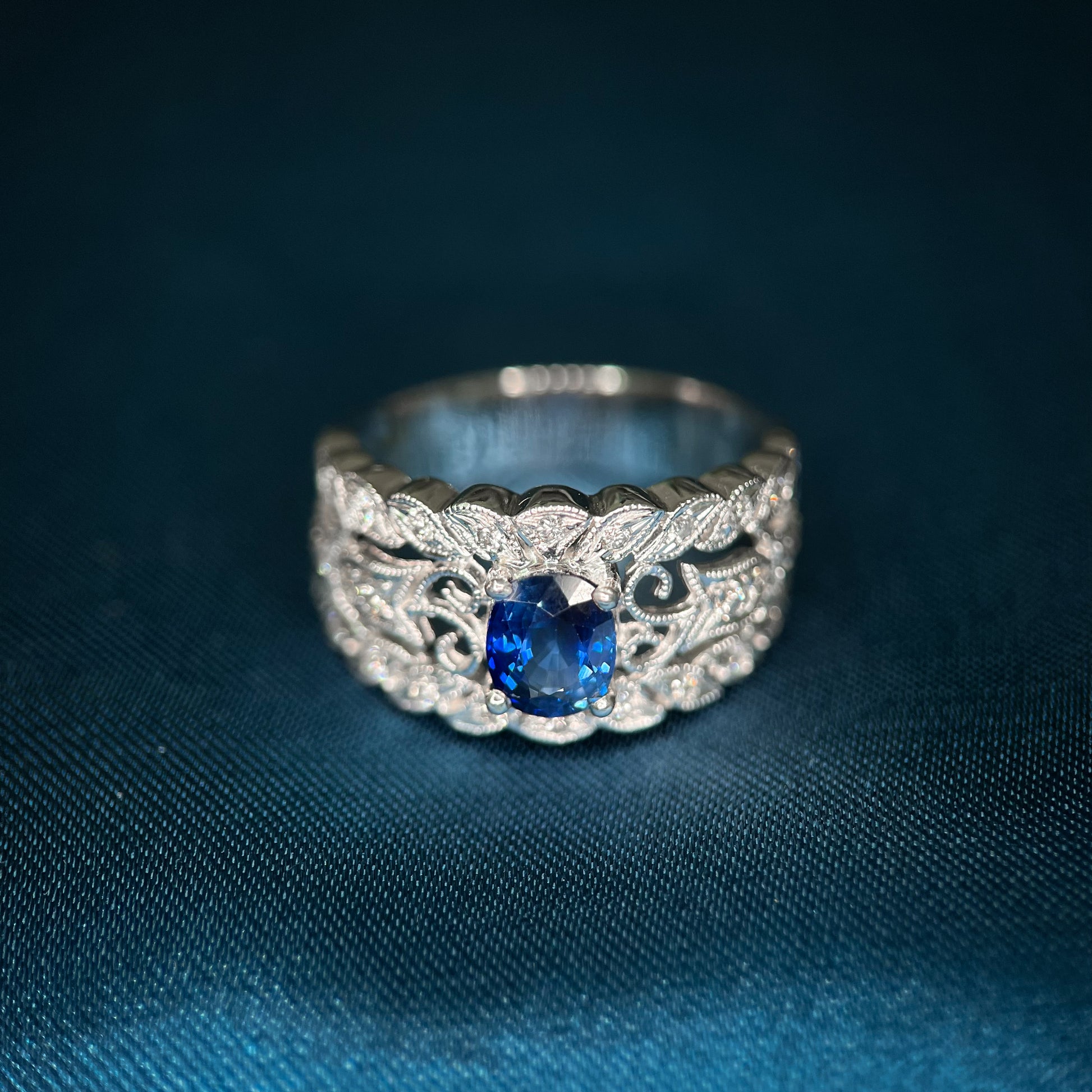 主石|天然藍寶石 95分配鑽|30顆,共32分材質|白金PT900 ,約重2.25錢※因寶石稀有性,每件作品實際克拉數略有不同