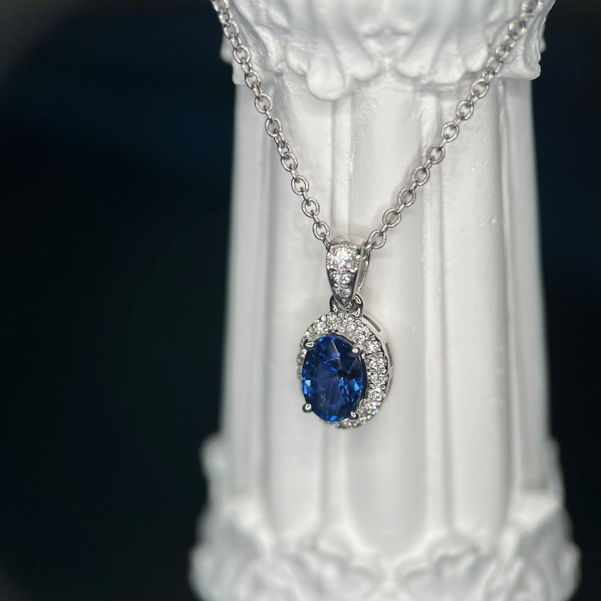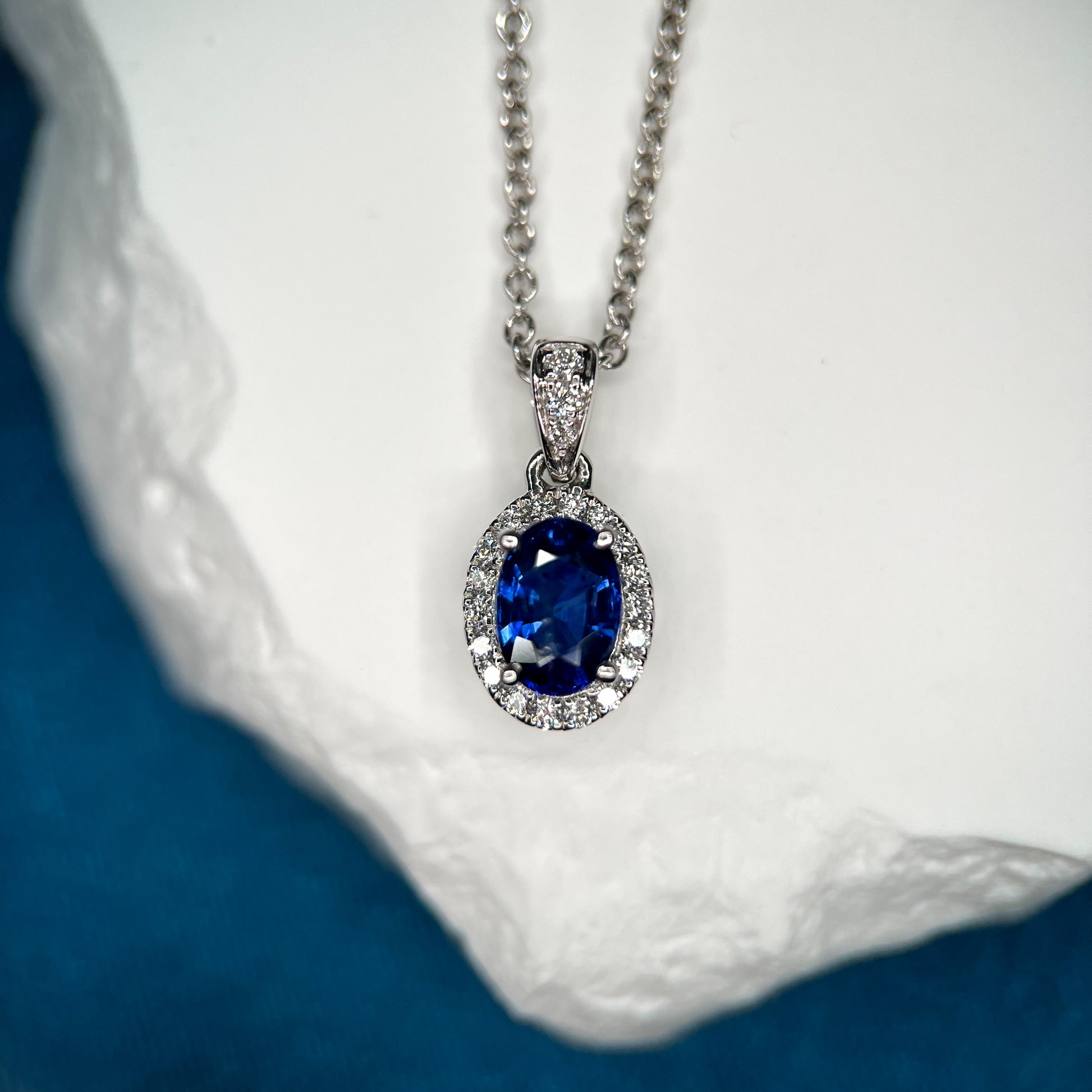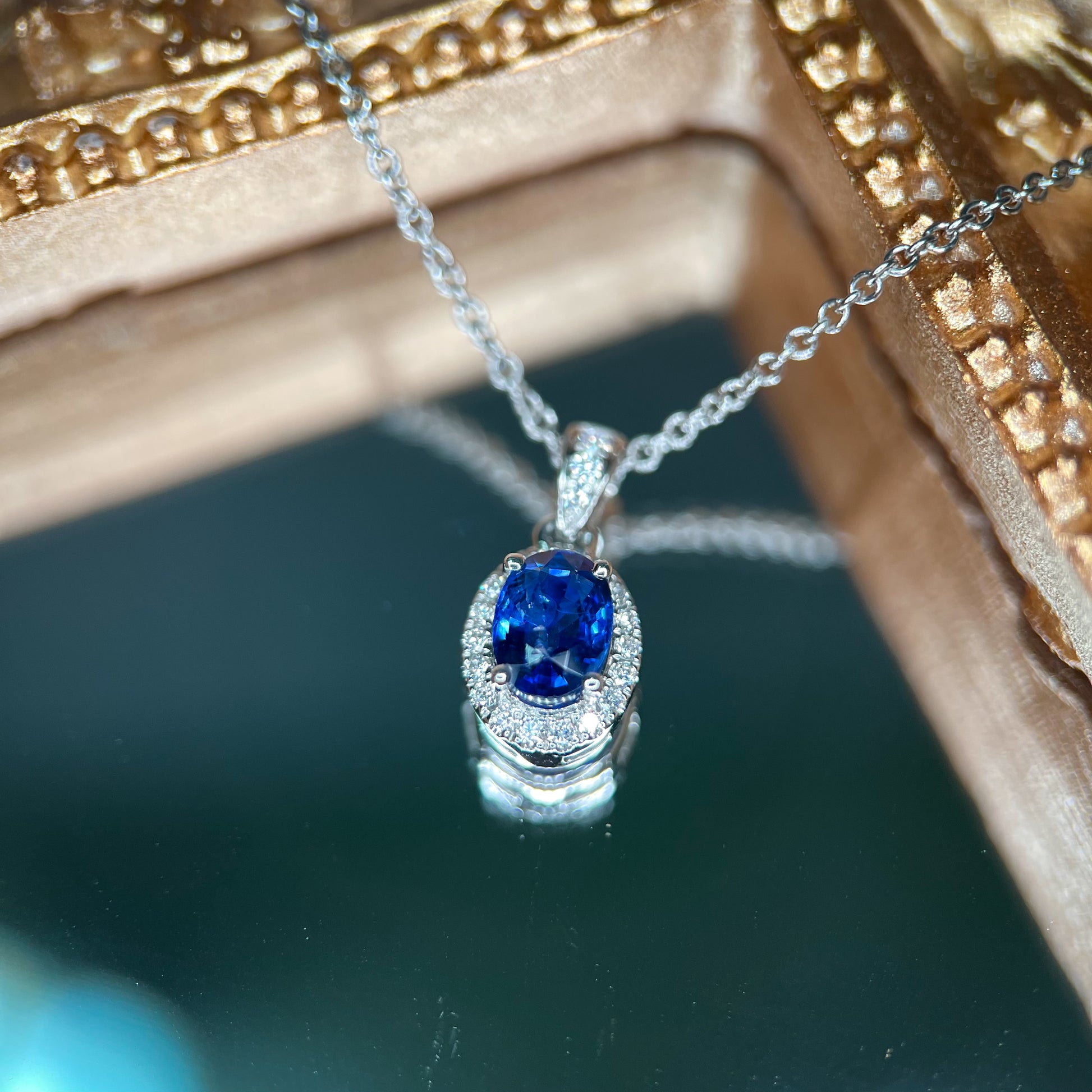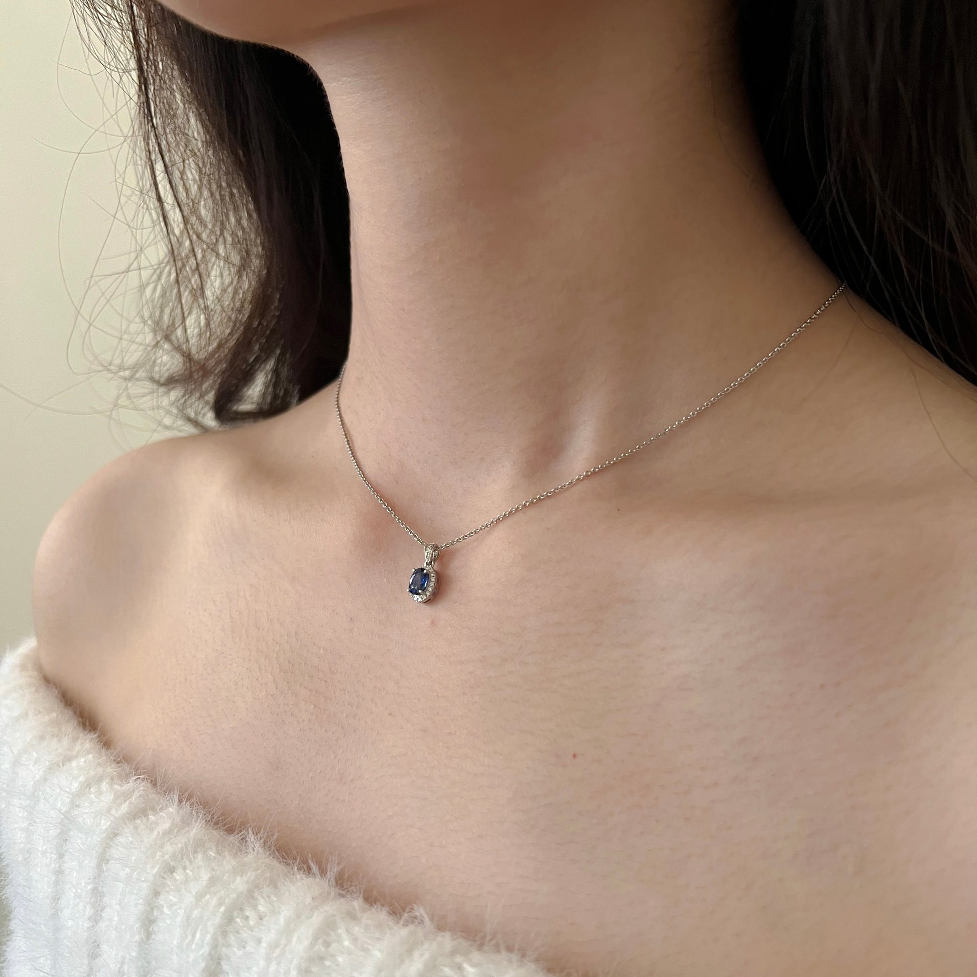 知性的光輝,內斂而深邃。橢圓形藍寶石如夜空般靜謐深遠,搭配21顆璀璨圓鑽點綴,勾勒出知性而不張揚的光彩。每一次舉手投足,都是智慧與優雅的展現。